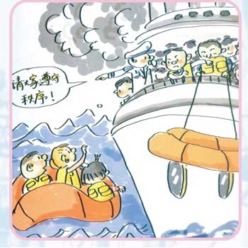 | 遇到事故需要棄船避難時(shí),要對浮舟進(jìn)行檢查,清點(diǎn)好帶到浮舟上的備用品。 |