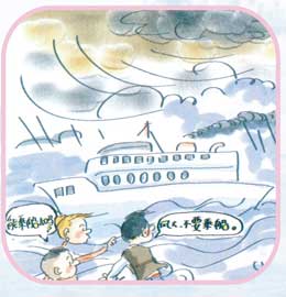 | 遇到大風(fēng)、大浪、濃霧等惡劣天氣時(shí),盡量避免乘船。 |