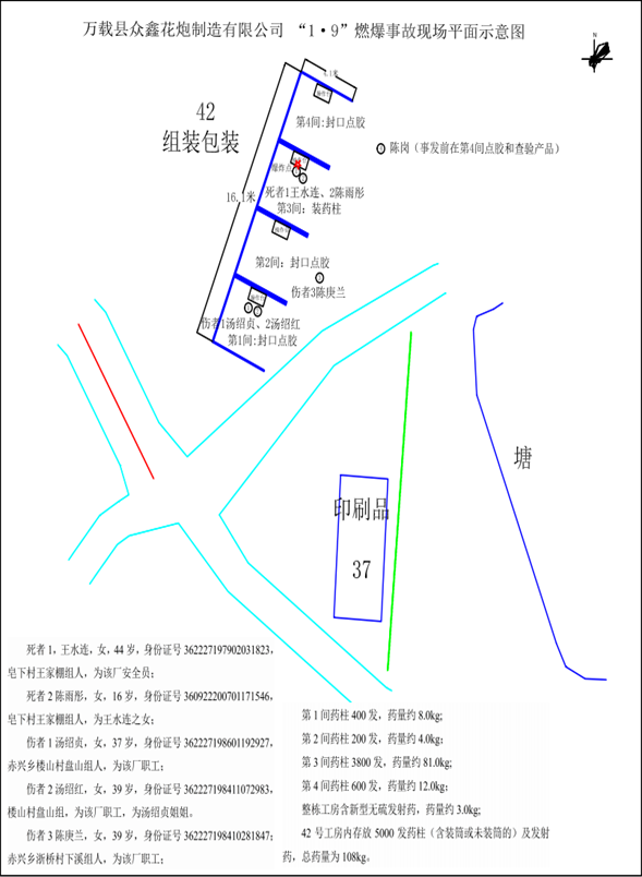 圖6?萬(wàn)載縣眾鑫花炮制造有限公司“1·9”燃爆事故現(xiàn)場(chǎng)平面示意圖