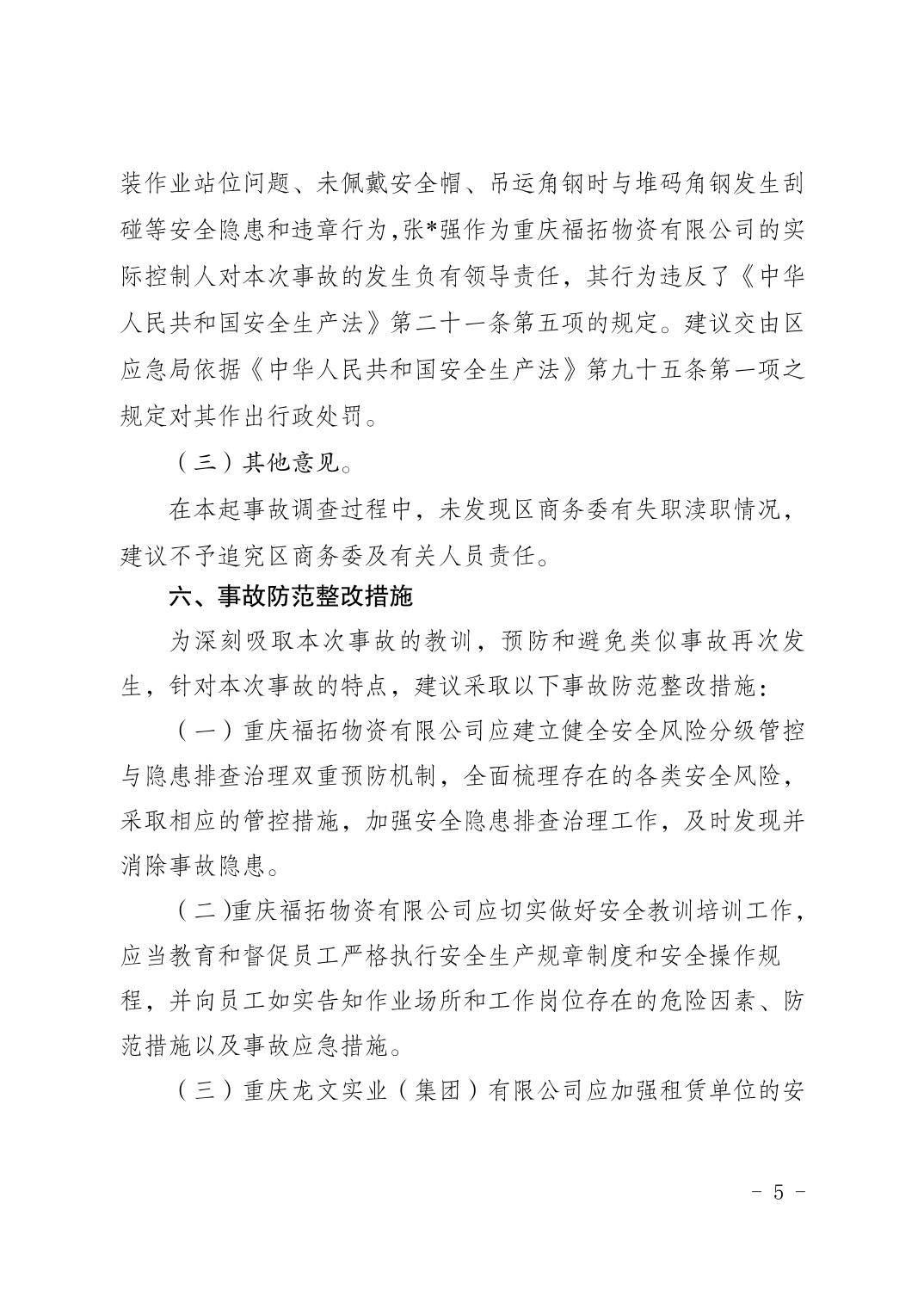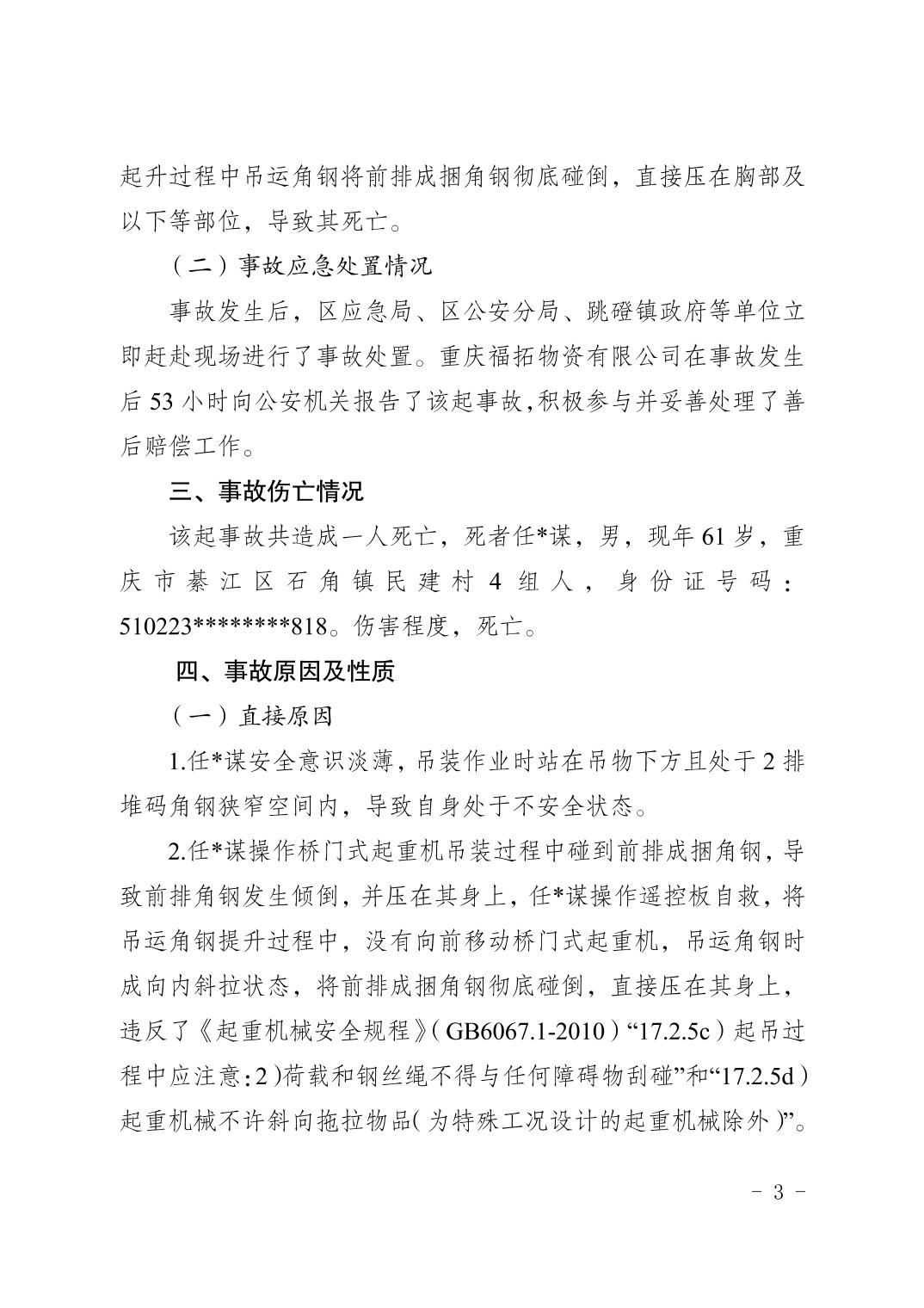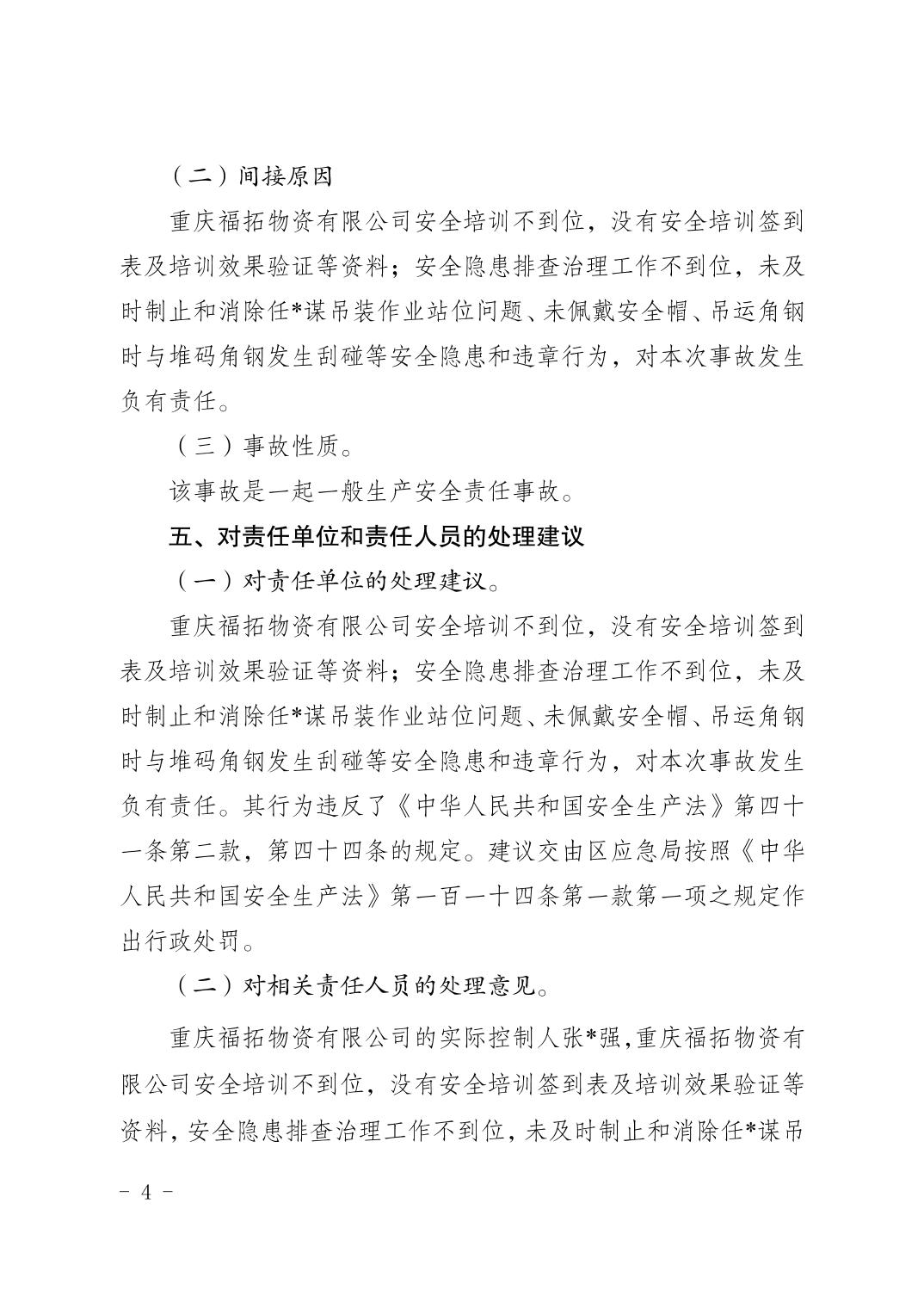 重慶福拓物資有限公司 “7·31”一般物體打擊事故調(diào)查報告