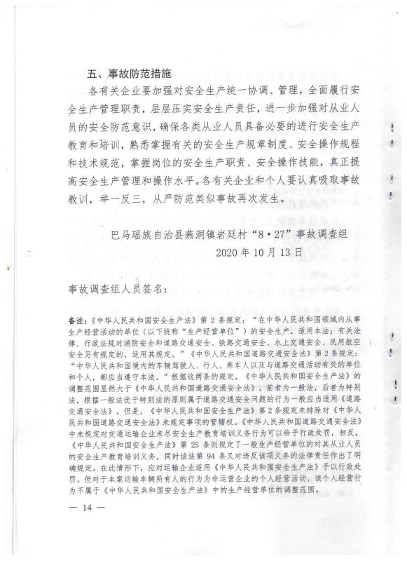 巴馬瑤族自治縣燕洞鎮(zhèn)巖廷村“8·27”事故調(diào)查報(bào)告