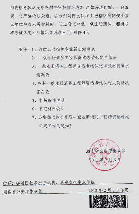 申請認定人員材料送省公安消防總隊(聯(lián)系人:曹俊,電話:0731-88119935,電子郵箱:
