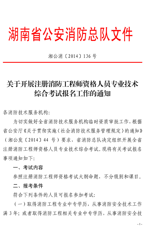 關(guān)于2015年度一級(jí)注冊(cè)消防工程師資格…
