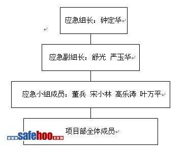 2、????????????? 預(yù)案應(yīng)急由工程項目應(yīng)急組織機構(gòu)第一責(zé)任人作出決定。