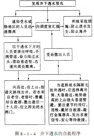 (1) 撤離時要服從命令, 不可慌亂, 要注意往高處走, 并沿預(yù)定的避災(zāi)路線出井。