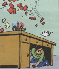 專家們認(rèn)為:大多數(shù)地震是有感或輕度破壞地震,所以遇震時(shí)一定要鎮(zhèn)靜,并就地躲避。