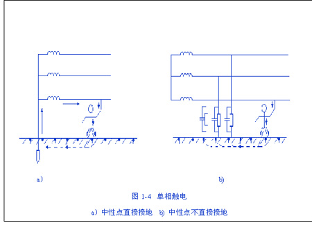 人體的不同部分同時接觸兩相電源時造成的觸電,如圖1-5所示。對于這種情況,無論電網(wǎng)中性點(diǎn)是否接地,人體所承受的線電壓將比單相觸電時高,危險更大。