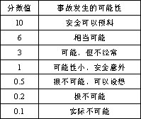 在設(shè)備日常維修維護(hù)的基礎(chǔ)上,安全檢查的重點(diǎn)要對(duì)照安監(jiān)和設(shè)備部門確立的關(guān)鍵項(xiàng),有針對(duì)性地消除安全隱患,從而使預(yù)防機(jī)制有效可靠。同時(shí),對(duì)作業(yè)條件進(jìn)行危險(xiǎn)性評(píng)價(jià),并制定相應(yīng)的應(yīng)急措施,風(fēng)險(xiǎn)大的作業(yè)活動(dòng)重點(diǎn)考慮。作業(yè)條件危險(xiǎn)性評(píng)價(jià)常用評(píng)分法—LEC法。危險(xiǎn)性用下式表示:
