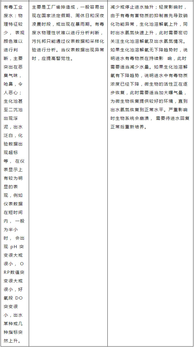 進水超標(biāo)具體工藝處理措施見《進水水質(zhì)超標(biāo)分析及調(diào)控措施》。