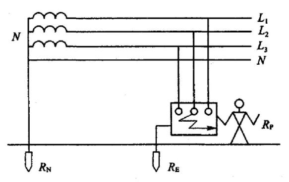 9.某企業(yè)低壓配電網(wǎng)的配電防護系統(tǒng)采用下圖所示的TT系統(tǒng),圖中RN為低壓中性點接地電阻。即工作接地電阻,RE為設備外殼接地電阻,即保護接地電阻,RP為人體電阻。關于該系統(tǒng)安全操作的說法,正確的是()。
