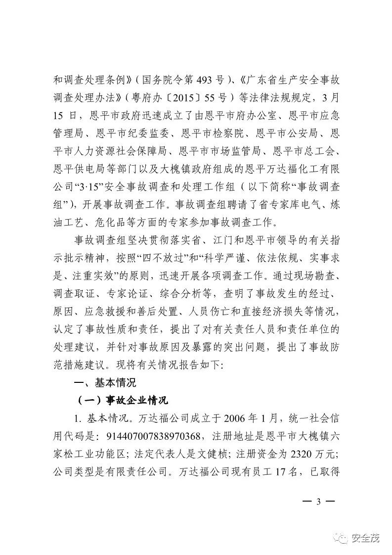 附:廣東恩平3.15閃爆事故調(diào)查報告(全文)