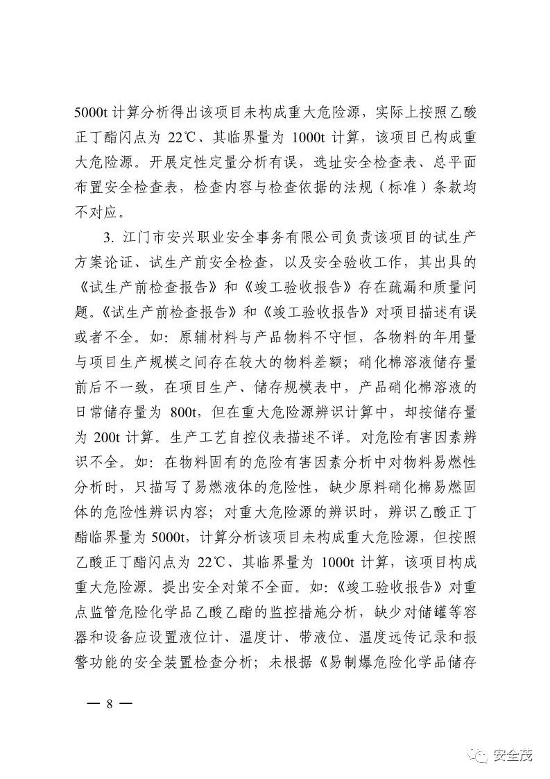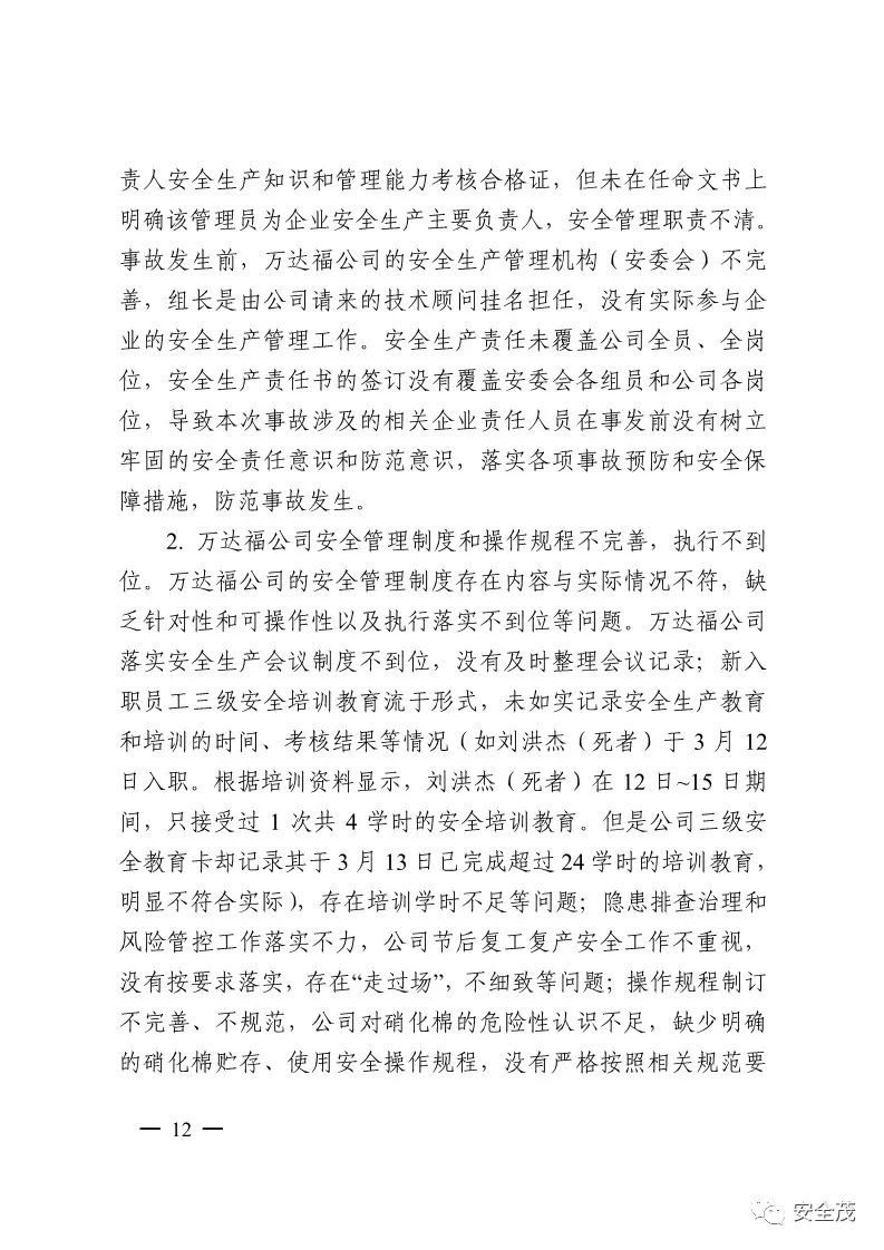 2019 年 3 月 15 日 10 時 10 分左右,廣東恩平萬達(dá)?;び邢薰驹谠嚿a(chǎn)過程中發(fā)生一起一般閃爆事故,造成 1 名員工死亡,直接經(jīng)濟(jì)損失 446 萬元。前不久廣東省恩平市安委會公布了該起事故調(diào)查報告。其中萬達(dá)福公司聘請了四川北方硝化棉股份有限公司吳某(具有注冊安全工程師證件)作為公司的安全(技術(shù))顧問,事故發(fā)生后吳某涉嫌重大責(zé)任事故罪,恩平市公安局對其立案調(diào)查。另萬達(dá)福公司生產(chǎn)主管在新入職員工(死者)未按要求完成三級安全教育培訓(xùn)的情況下,貿(mào)然安排他進(jìn)入車間配合操作,也涉嫌重大責(zé)任事故罪被立案調(diào)查。