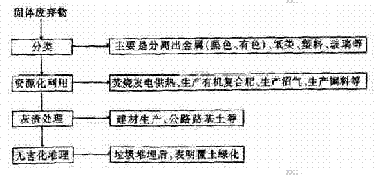 圖1是一個典型的固體廢物處理工藝流程,它是多個具體的處理技術(shù)的組合。其中,以資源化技術(shù)為主。資源化技術(shù)是固體廢物處理技術(shù)的發(fā)展趨勢。