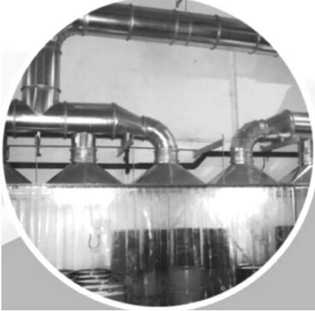 由于溶劑具有可揮發(fā)性,由其配制的復合清洗劑也具有這一特性。本技術在清洗劑使用及回收過程中,泛清洗劑暴露在空氣中的工序,都安裝了收集處理系統(tǒng),使其不能揮發(fā)到大氣,污染環(huán)境。見圖5、圖6。
