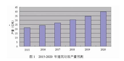 根據(jù)中華研普行業(yè)調(diào)研報(bào)告,國內(nèi)建筑垃圾產(chǎn)量預(yù)測圖1可知,2015年至2020年建筑垃圾產(chǎn)量逐年增長,到2020年時(shí)為39.66億噸。