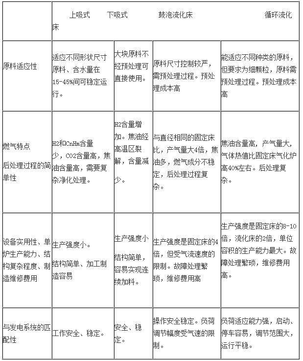 表1-1各種生物質(zhì)氣化發(fā)電技術(shù)的特點(diǎn)