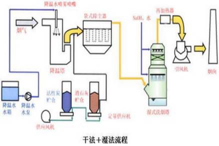 酸性氣體SOx、HCl主要通過干法、半干法、濕法等凈化工藝加以去除: