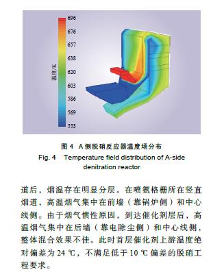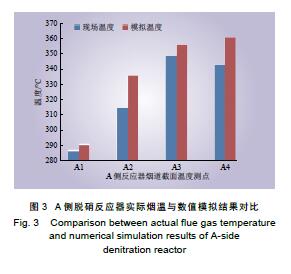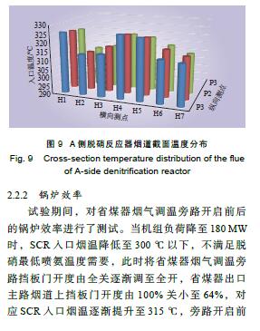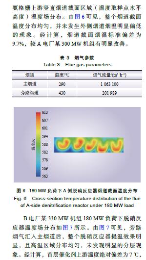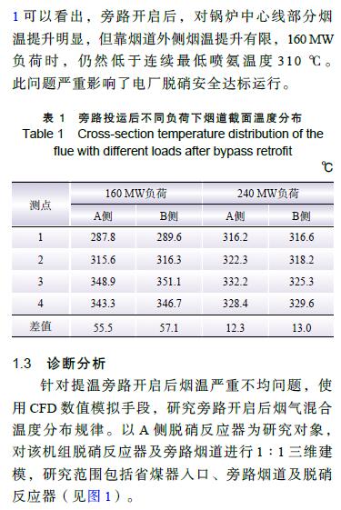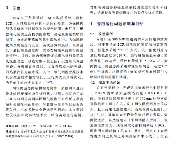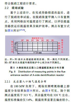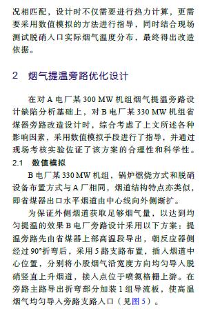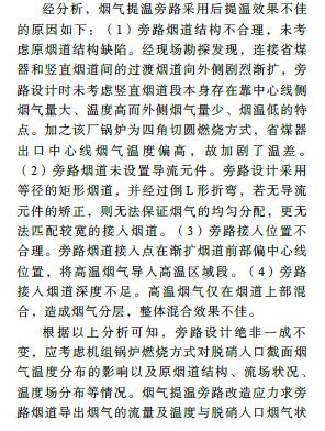 摘要: 燃煤電廠低負荷運行時SCR脫硝裝置入口煙溫常達不到要求,某些電廠采用旁路提溫方法予以解決,卻出現(xiàn)調溫旁路提溫效果欠佳和煙溫偏差較大的問題。以A電廠某 330 MW 機組為例,在現(xiàn)場勘察基礎上采用數(shù)值模擬方法,找出問題所在:(1)旁路煙道結構不合理,未考慮原煙道結構缺陷;(2)旁路煙道未設置導流元件;(3)旁路接入位置不合理;(4)旁路接入煙道深度不足。在總結脫硝調溫旁路煙道設計和運行要點基礎上,采用數(shù)值模擬手段對B電廠某 330 MW 機組類似改造進行了優(yōu)化設計,并開展現(xiàn)場試驗,對煙氣提溫效果進行評估。結果表明:B電廠煙氣旁路提溫改造效果顯著且煙溫偏差較小。