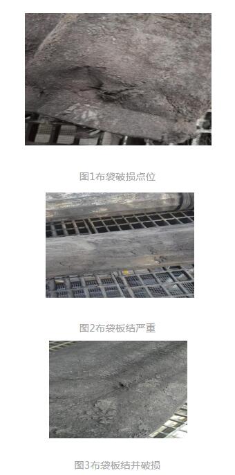 (2)因布袋板結(jié)透氣性降低導(dǎo)致壓差上升,反吹頻率過高加劇了布袋的破損。