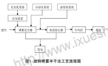 旋轉(zhuǎn)噴霧半干法工藝流程見圖1。