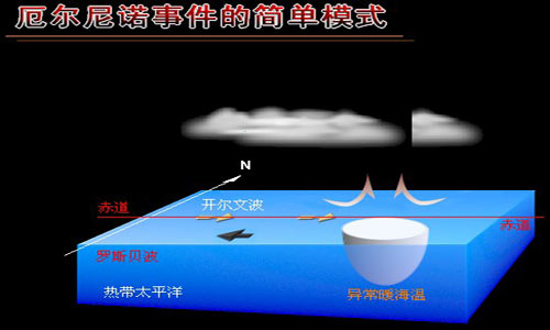 ????正常情況下,熱帶太平洋區(qū)域的季風(fēng)洋流是從美洲走向亞洲,使太平洋表面保持溫暖,給印尼周?chē)鷰?lái)熱帶降雨。但這種模式每2—7年被打亂一次,使風(fēng)向和洋流發(fā)生逆轉(zhuǎn),太平洋表層的熱流就轉(zhuǎn)而向東走向美洲,隨之便帶走了熱帶降雨,出現(xiàn)所謂的“厄爾尼諾現(xiàn)象”。