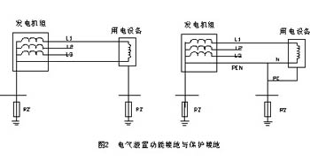 電氣裝置接地涉及兩個主要方面,其一是電源功能接地,如電源系統(tǒng)接地,多指發(fā)電機(jī)組、電力變壓器等中性點的接地,一般稱為系統(tǒng)接地,或稱系統(tǒng)工作接地。另一方面是電氣裝置外露可導(dǎo)電部分接地,起保護(hù)作用,故習(xí)慣稱為保護(hù)接地(圖2)。