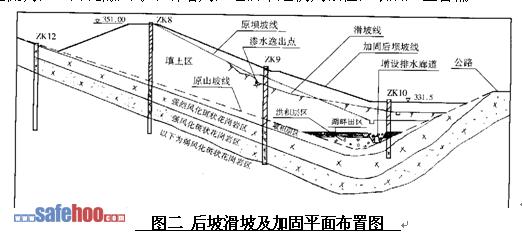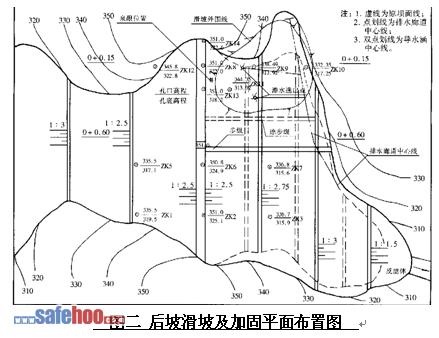 (4)放緩背水壩坡的坡度,后坡的三個分級的坡度由加固前的1:2.25、1:2.50、1:2.75,放緩為1:2.5、1:2.75、1:3.0,這增強了壩坡的抗滑穩(wěn)定。