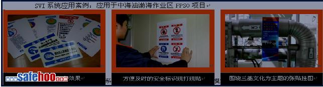 此次天津分公司QHD32-6 和BZ25-1 油田,在建立油田安全可視化系統(tǒng)項目中,采用ENERGY愛能者可視化研究機(jī)構(gòu)開發(fā)的SVI 系統(tǒng)模式,大大降低成本,具有較高的性價比。從項目實(shí)施效果來看,達(dá)到并超過了預(yù)期設(shè)定的目標(biāo);并建立了油田自有的安全標(biāo)識模板庫,極大方便了現(xiàn)場安全工程師完善現(xiàn)場標(biāo)識的制作與統(tǒng)一。此可視化系統(tǒng)的統(tǒng)一與規(guī)范是企業(yè)在安全標(biāo)識管理方面的一個創(chuàng)新和深化,是現(xiàn)代化安全管理的里程碑。