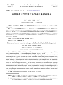 儲(chǔ)層性質(zhì)對(duì)壓回法氣井…