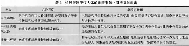采用Ⅱ類電氣設(shè)備(雙重絕緣或加強(qiáng)絕緣)的方法和采用非導(dǎo)電環(huán)境(在該環(huán)境中人所能夠觸及到的物體都具有較高的對(duì)地絕緣水平)的方法,都是在電氣設(shè)備基本絕緣失效時(shí),仍能防止人體通過(guò)危險(xiǎn)電流。但前者從電氣設(shè)備本身著手,后者從使用環(huán)境著手(見(jiàn)表3)。