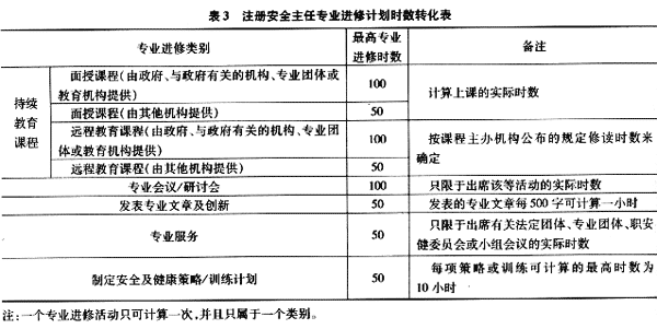???? 《注冊安全主任專業(yè)進修計劃指引》認可的專業(yè)進修計劃形式多種多樣,最終能夠被勞工處認可需要轉(zhuǎn)化成進修時數(shù),以確認是否可以續(xù)期注冊或重新確認生效。為保證專業(yè)進修的有效性,香港勞工處對于上述各類進修計劃的最高許可時數(shù)和轉(zhuǎn)化方法都作了規(guī)定(見表3)。