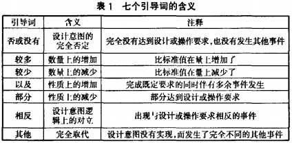 HAZOP的基本指導思想是:任何偏離預先設(shè)定的操作條件值的現(xiàn)象都可能引起危險,最終導致事故和損失。HAZOP的基本原理就是在基本指導思想指導下運用英國化學工業(yè)協(xié)會(CIA)推薦的七個引導詞(Guide words)在模擬試運行中引導操作偏離預先設(shè)定的操作條件即形成偏差,誘發(fā)危險的形式(見表1)。