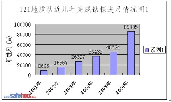 ? 2 、鉆探效率大大提高,使用老工法鉆月效率 180m / 月推廣應(yīng)用繩鉆“七 . 五”期間 233m / 月、“八 . 五”期間 422m / 月、“九 . 五”期間 604m / 月、“十 . 五”期間仍保持 600m / 月以上。小時(shí)效率由老工法的 0.65m /h 提高到應(yīng)用繩鉆技術(shù)“七 . 五”期間 1.07m /h 、“八 . 五”期間 1.67m /h 、“九 . 五”期間達(dá) 3.01m /h 、 2006 年達(dá) 3.14m /h 。