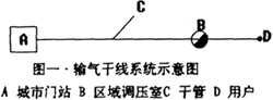 以簡單的支管構(gòu)造來分析,參見圖一,通過千管的輸氣量與干管始,末端的壓力之間存在如下關(guān)系: