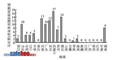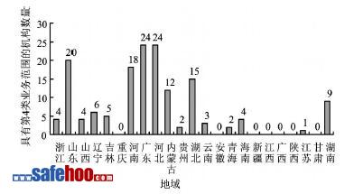 ??????? 圖2 乙級資質(zhì)安全評價機構(gòu)地域分布