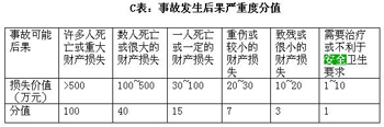 E—人員暴露情況分值???????????????? C—事故發(fā)生后果嚴(yán)重度分值