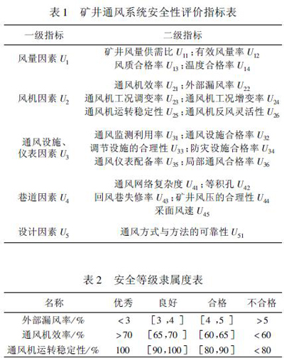 1礦井通風(fēng)系統(tǒng)評價指標(biāo)體系