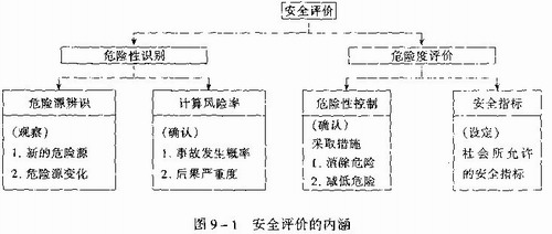 可以看出,安全評價包括識別危險性和評價危險程度二個方面。前者為辨識危險源,確定來自危險源的各種危險性;后者為控制危險性,包括危險的定量,即確定這些危險發(fā)生的頻率及可能造成的后果(一般將定量化的危險稱之為風(fēng)險),并將這些風(fēng)險與預(yù)定的風(fēng)險值相比較,判斷是否可以接受,最后即是根據(jù)風(fēng)險能否接受而提出的降低、消除、轉(zhuǎn)移風(fēng)險的對策。在實際的安全評價過程中,這幾個方面是相互交叉、相互重疊于整個評價工作中。