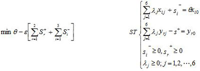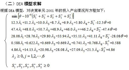 本文選擇需要評(píng)估的年份作為決策單元,即2001-2006年作為6個(gè)決策單元,則評(píng)價(jià)第 個(gè)決策單元綜合效率的具有阿基米德無(wú)窮小的 模型為: