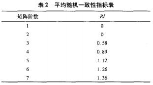 矩陣平均隨機一致性指標(biāo)RI由表2查得