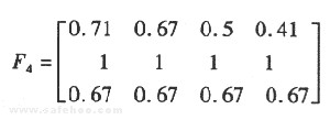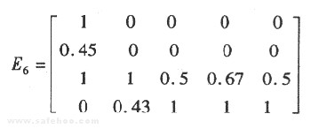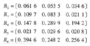 用關(guān)聯(lián)系數(shù)計(jì)算公式(2),其中的分辨系數(shù)一般為0~1,此處取為ρ=0.5,由公式得各個(gè)子集的關(guān)聯(lián)系數(shù),并建立下列關(guān)聯(lián)系數(shù)矩陣。