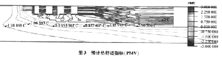 經(jīng)計(jì)算,整個(gè)模擬區(qū)中的預(yù)計(jì)熱舒適指標(biāo)值為:min=-2.3148,max=3,mean=1.12。