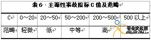 主毒性事故指標C=Q×U=80,查表6可知主毒性事故范疇屬于中等。
