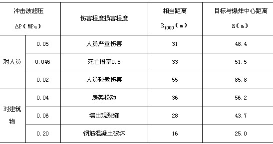 表4 爆炸傷害程度和目標(biāo)與爆炸中心距離的關(guān)系