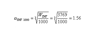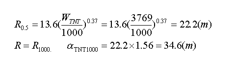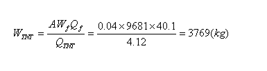 取A=4%;QTNT=4.12 MJ/kg;Qf=40.1 MJ/kg: