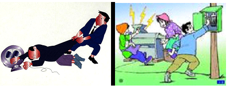 2、 教師根據(jù)學生的回答及時教育:現(xiàn)代家庭,隨著生活水平不斷提高,家庭中的電器也越來越多,給我們學習、生活帶來了好多方便及樂趣。但是,如果我們沒有掌握一定的用電知識,不注意用電安全,就會很危險。所以,我們不要出于好奇,自行拆卸、維修電器,不要私自拉或亂接電線和隨意拆裝電器。使用和操作電器要注意不能濕水,一旦電器出現(xiàn)故障,應(yīng)立即截斷電源。播放制作好的圖片: