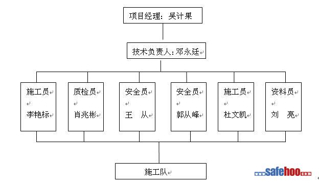 開工后建立健全項目部各級人員安全責任制,主要有:項目經(jīng)理、技術負責人、施工員、安全員、技術員、電工、焊工、架子工、機械工、起重工。