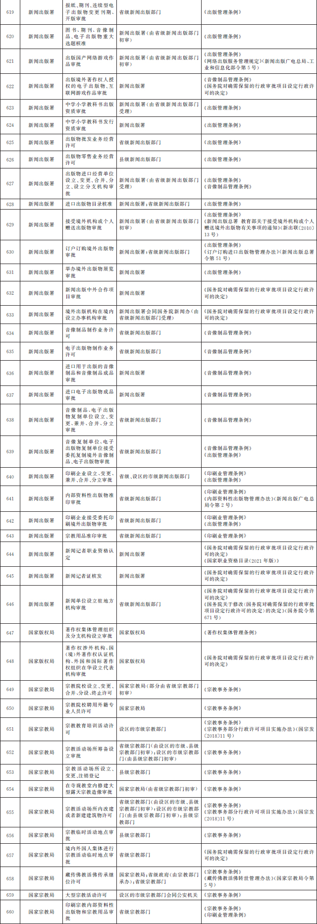 法律、行政法規(guī)、國務(wù)院決定設(shè)定的行政許可事項清單(2022年版)