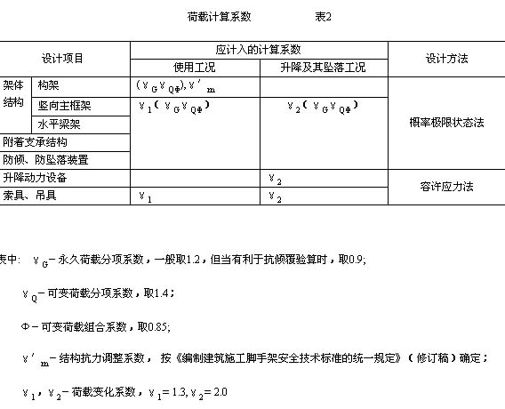 第十條 附著升降腳手架各組成部分的設(shè)計(jì)應(yīng)按表2的規(guī)定計(jì)入相應(yīng)的荷載計(jì)算系數(shù)。