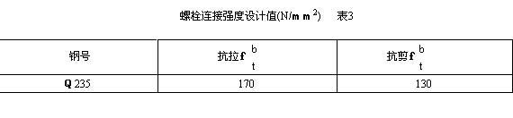 第十四條 螺栓連接強(qiáng)度的設(shè)計(jì)值應(yīng)按表3取用;